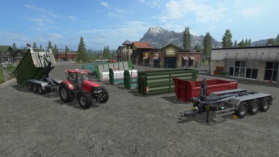 В архиве: ITRunner 26.33 HD hooklift trailer, Skip, Bale Container, Wood Container, Slurry Container, Grain Container, Chaff Container and Manure Container.