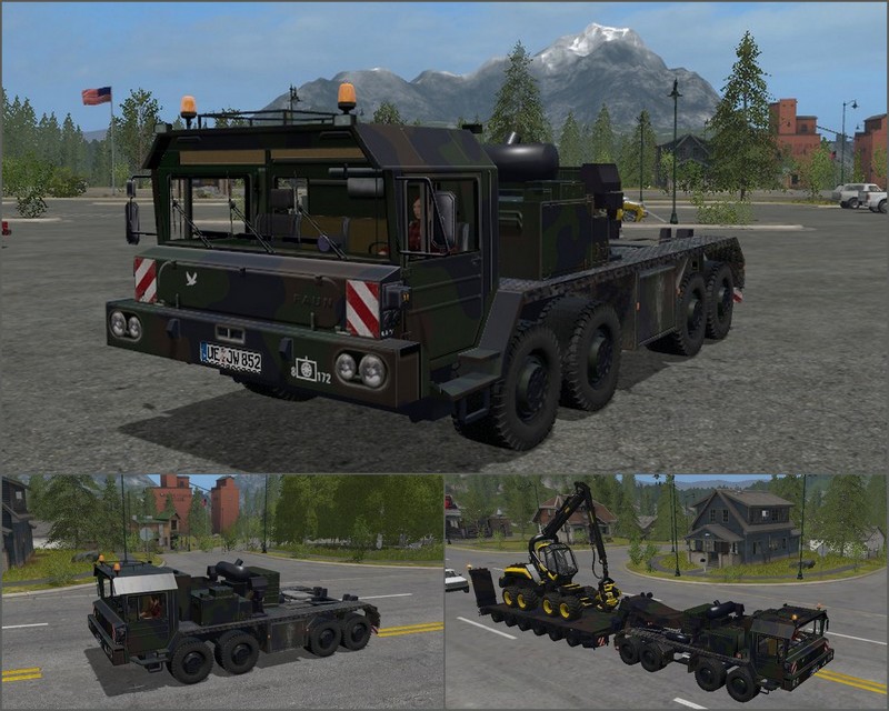 Имеет мощность двигателя 440 л.с., макс. скорость 90 км/ч., объем кузова 12500 литров, перевозит все стандартные культуры. В комплекте идет прицеп-самосвал Fliegl также на 12500 литров. Прицепу и грузовику при покупке можно выбирать цвет и тип колес.