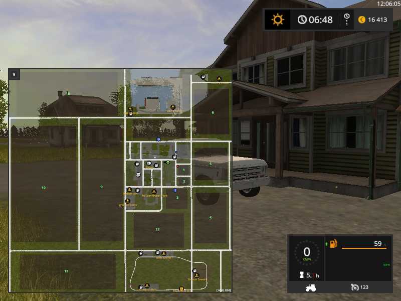 Автор карты изменил все стандартные постройки, место стартовой точки, изменил ферму для коров, свиней и куриц. Автор посчитал нужным добавить больше леса, т.к в стандартной версии карты ему показалось, что его недостаточно для занятия лесным хозяйством. Всего вам доступно также 31 поле, некоторые из них ваши, стартовая техника и оборудование.
