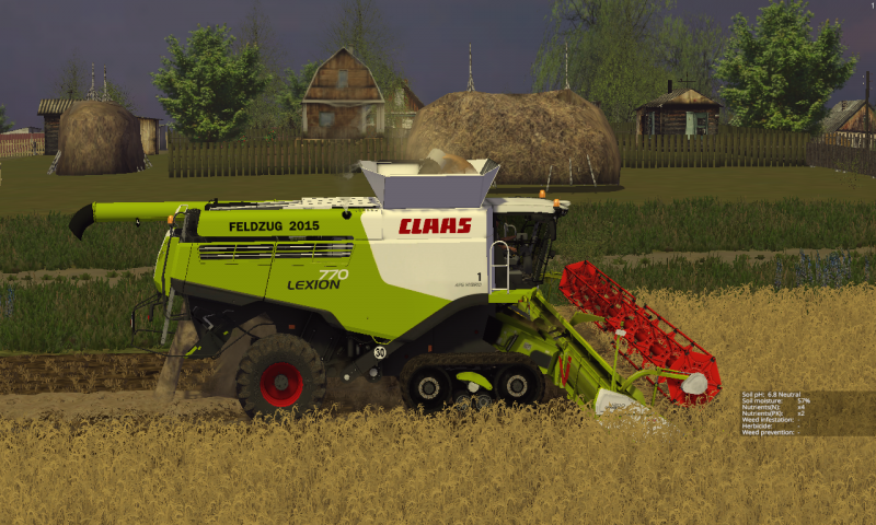 Комбайн Нива Эффект СК5МЭ в зелёном цвете.Комбайн морается,оставляет следы,летит пыль из под колёс,рабочий свет(поворотники,аварийка,проблесковый маячок),объём бункера 3 тонны.В архиве так же есть жатка,рабочий захват 4 метра,убирает:пшеница,ячмень,рапс и сою.