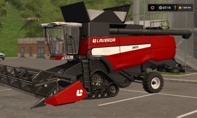 Зерноуборочный комбайн на гусеницах Laverda M410 для Farming Simulator 17, в комплекте жатка с шириной захвата 7,6 метра, максимальная скорость во время уборки урожая 10 км\час, объем бункера 12 500 литров.
