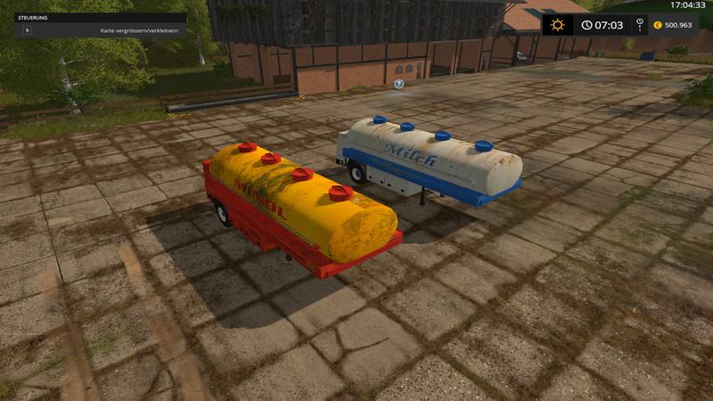 Два полуприцепа DDR Semitrailer для Farming Simulator 17, объем каждой цистерны 8 000 литров, предназначены для перевозки воды, молока и горючего топлива.