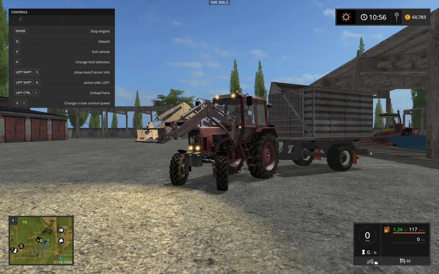 Трактор МТЗ 1025 для Farming Simulator 17, качественные текстуры, открываются двери и окна, мощность двигателя 105 лошадиных сил, максимальная скорость 40 км\час, консоль интерактивного управления.