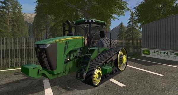 Гусеничный трактор John Deere 9RT для Farming Simulator 17, мощность до 560 лошадиных сил, максимальная скорость 43 км\час, анимация зеркал и приборов, амортизация кабины, дополнительно выбор двигателя.