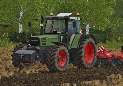 Мод трактора Fendt Favorit 512 C для Farming Simulator 17, максимальная скорость 50 км\час, дополнительно выбор двигателей, крепление для фронтального погрузчика, двойные и узкие колеса, цвет ободов и дизайн.
