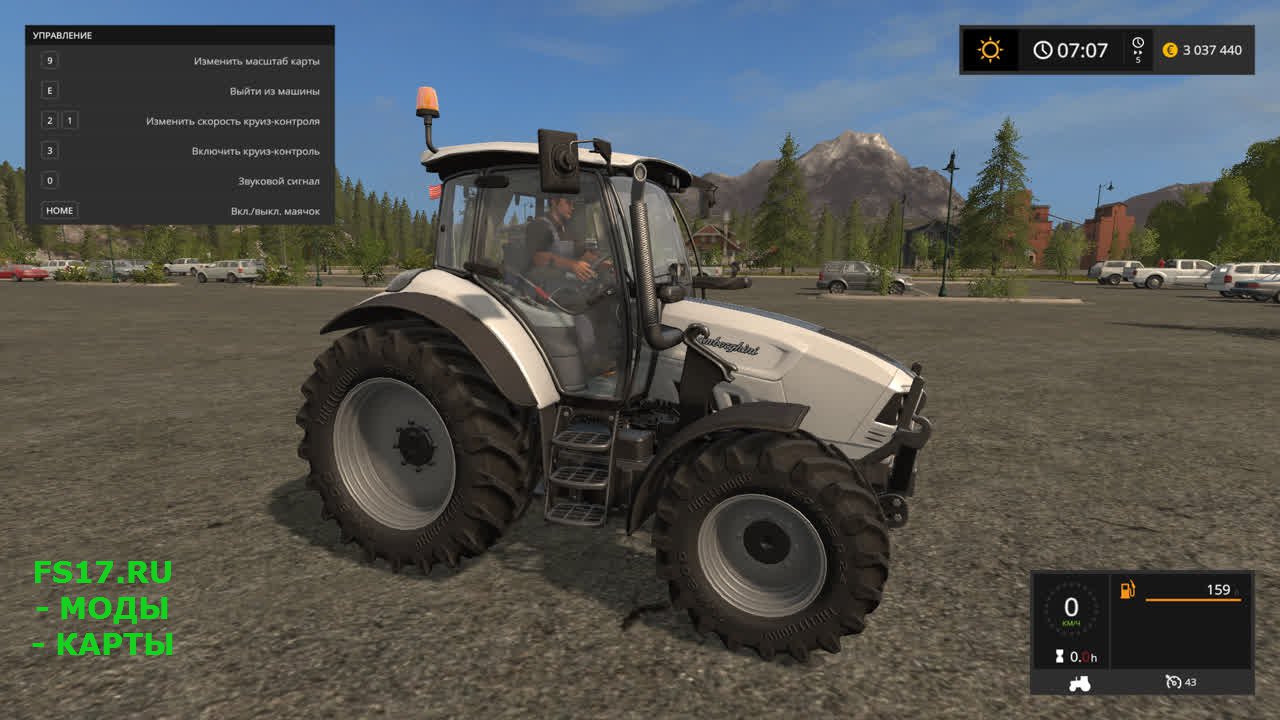 Мод трактор Lamborgini Mach VRT Tuning Farming Simulator 2017 Мощность 291 л.с, 365 л.с, 557 л.с. Скорость 63 км/ч, 66 км/ч, 85 км/ч. Рабочая приборная панель и зеркала, анимация рук фермера, шумоизоляция, выбор (двигателя, крепления фронтального погрузчика, балансировка колес, цвета колесных дисков, колеса стандарт/широкие шины) при покупке Моющийся Светотехника Оставляет следы Летит пыль из под колес